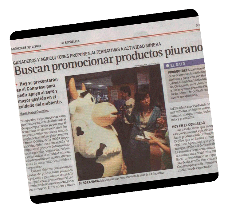 ¿Qué podrían tener en común una vaca empresaria y exportadora y un rocoto asado? (Una cocina surge si nos escribes y nos das la respuesta correcta). Edelmira Buleje Baca fue el personaje principal de la campaña de incidencia que diseñamos para visibilizar las diversas experiencias emprendedoras de Piura y promover el desarrollo sostenible en la región. El rocoto asado fue el personaje que dio la cara (no precisamente la mejor) para promover una campaña de concientización y sensibilización sobre el cambio climático en Arequipa. "Nos estamos calentando ¡Y tú no haces ni Misti!". Te dejo ahí su exhortación para que sigamos pensando.